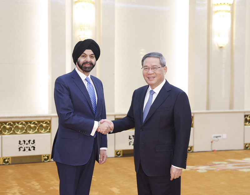 3月25日上午,国务院总理李强在北京人民大会堂会见世界银行行长彭安杰。新华社记者 丁海涛 摄