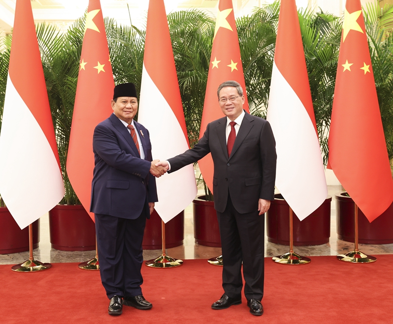 4月2日上午,国务院总理李强在北京人民大会堂会见印度尼西亚当选总统普拉博沃。新华社记者 庞兴雷 摄