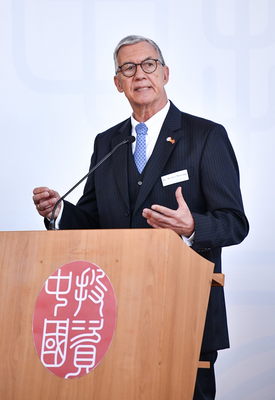 4月5日,德国联邦议院德中议会小组主席弗里德里希在德国斯图加特举行的2024“投资中国”系列活动德国专场上致辞。新华社记者 任鹏飞 摄
