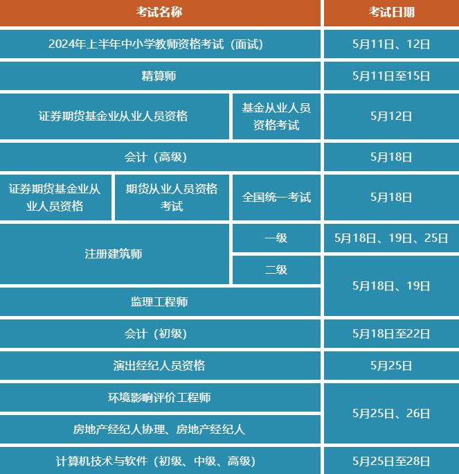 要考证的小伙伴看过来,5月专业技术人员职业资格考试时间表来啦!涉及精算师、证券期货基金业从业人员资格考试等,记得别错过。更多考试信息戳下图查看↓