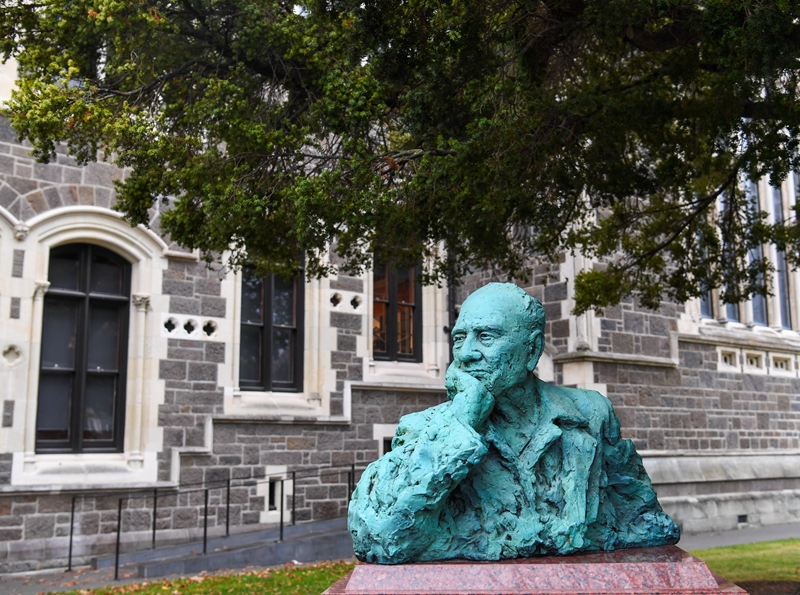 这是5月24日新西兰克赖斯特彻奇艺术中心拍摄的路易·艾黎塑像。新华社记者 郭磊 摄