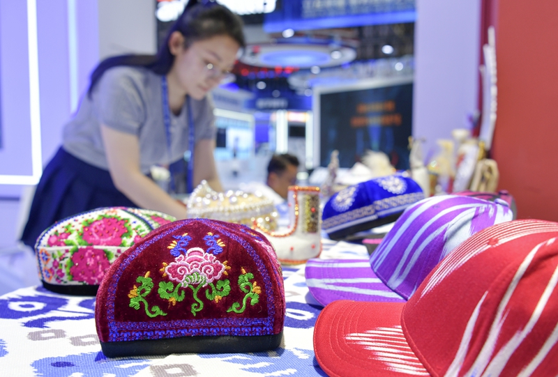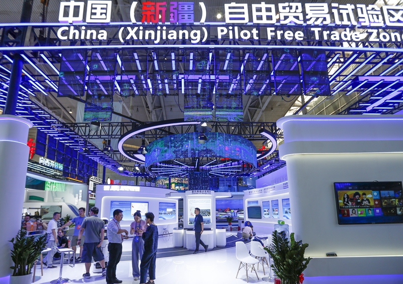 这是6月25日在第八届亚博会拍摄的中国(新疆)自由贸易试验区展台。新华社记者 陈朔 摄