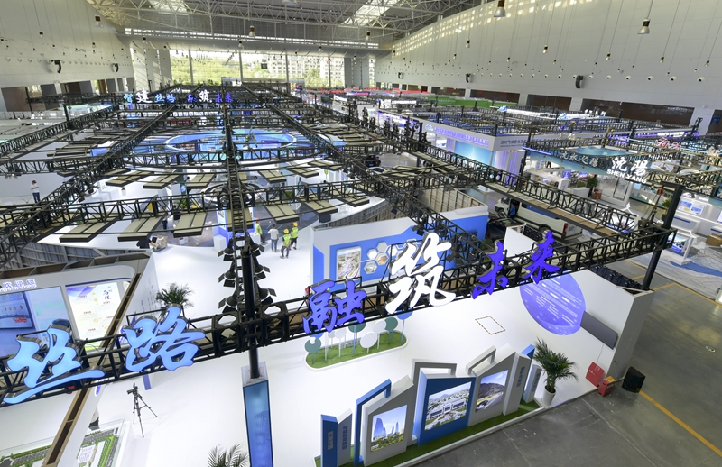 展区亮点纷呈,展览题材丰富。可实时更新数据,打破盲区作业场景,提高整体吊装效率的5G无人塔吊操作模拟器在本次博览会上首发。混凝土质量检测机器人、竹缠绕管道和新型治沙产品固沙宝……一批领先设备、技术和新产品亮相,传递博览会新气象。