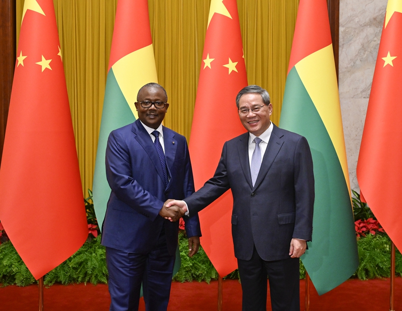 7月10日上午,国务院总理李强在北京人民大会堂会见来华进行国事访问的几内亚比绍总统恩巴洛。新华社记者 殷博古 摄