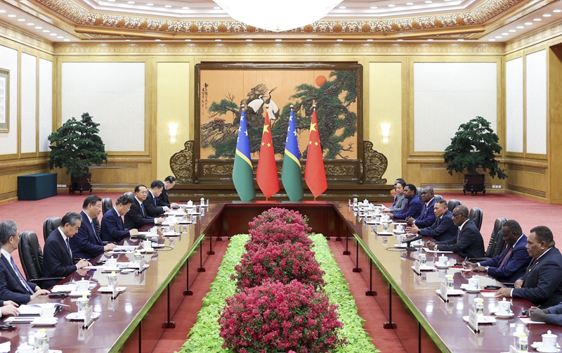 习近平强调,中方始终坚持独立自主和平外交政策,主张各国无论大小、强弱、贫富一律平等。中国同所罗门群岛等太平洋岛国开展友好合作,是真心诚意帮助岛国实现发展,是在“南南合作”框架内的互帮互助,属于“全球南方”共同发展的范畴,不针对第三方,不谋取任何私利。中方愿继续为所罗门群岛实现发展提供力所能及的帮助,加强在联合国、太平洋岛国论坛等多边机构中协调配合,维护发展中国家共同利益。