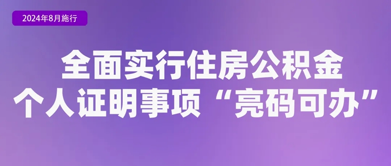 《住房城乡建设部办公厅关于整合住房公积金个人证明事项推动“亮码可办”工作的通知》提出,依托全国住房公积金小程序和全国住房公积金监管服务平台,在住房公积金缴存人申请开具职工缴存证明、异地贷款缴存使用证明、贷款结清证明等个人证明时,向其提供实时在线开具、后台自动查验等服务,以统一“电子码”代替原有3项纸质证明,实现住房公积金个人证明事项“亮码可办”。2024年8月起,全面实行住房公积金个人证明事项“亮码可办”。
