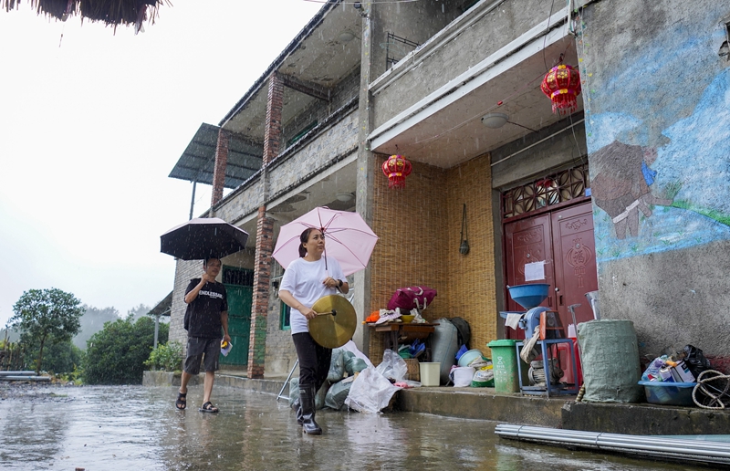 7月1日,民兵在湖南省平江县天岳街道大西村转移群众。新华社记者 陈思汗 摄