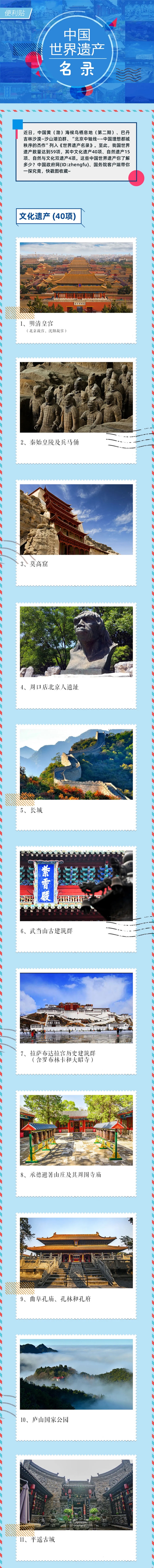 近日,在印度新德里举行的联合国教科文组织第46届世界遗产大会通过决议,将我国世界文化遗产提名项目“北京中轴线——中国理想都城秩序的杰作”和世界自然遗产提名项目“巴丹吉林沙漠-沙山湖泊群”、“中国黄(渤)海候鸟栖息地(第二期)”列入《世界遗产名录》。至此,我国世界遗产总数达到59项,居世界前列。最新版中国世界遗产名录,一图看——
