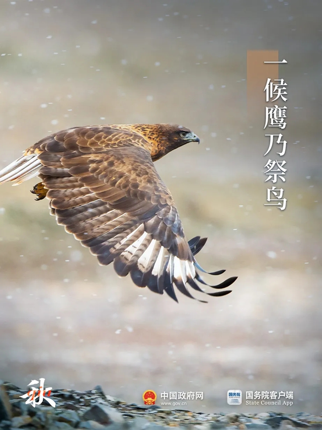 秋高气爽,鹰击长空,捕食以祭,预示着自然界的更迭。