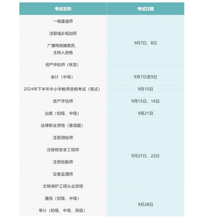9月有这些考试,别错过