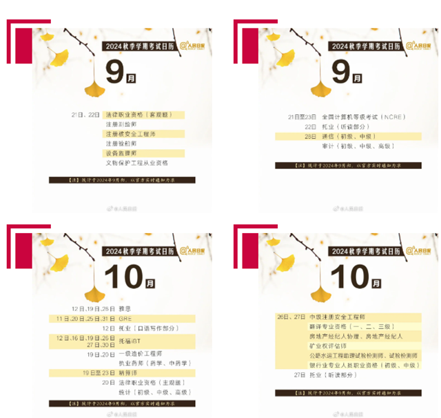 2024年秋季学期已经开启,点击下方图片查看接下来两个月的考试日历!