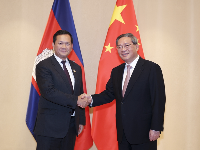 新华社万象10月10日电(记者蒋励 伍岳)当地时间10月10日,国务院总理李强在万象出席东亚合作领导人系列会议期间会见柬埔寨首相洪玛奈。