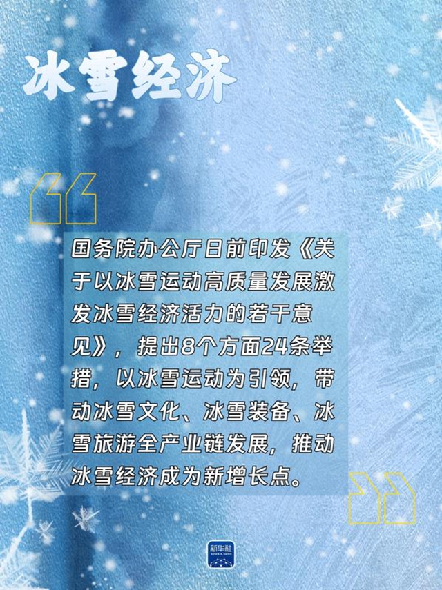 【解析】国务院办公厅日前印发《关于以冰雪运动高质量发展激发冰雪经济活力的若干意见》,提出8个方面24条举措,以冰雪运动为引领,推动冰雪经济成为新增长点。明确到2027年冰雪经济总规模达到1.2万亿元,到2030年冰雪经济总规模达到1.5万亿元。