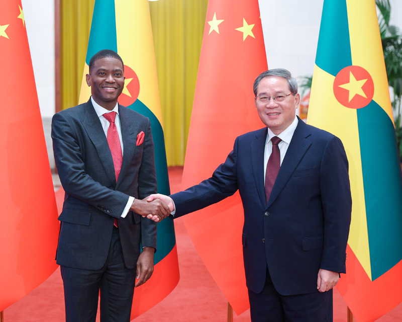 李强指出,中方愿同格方加强发展战略对接,以高质量共建“一带一路”为引领,深化农业、基础设施建设、医疗卫生等传统领域合作,积极探讨在新能源、数字经济、蓝色经济等新兴领域打造更多合作亮点,推动两国互利合作提质升级。中方鼓励有条件的中国企业赴格投资兴业。双方要继续加强旅游、文化、教育、媒体等领域交流合作。中方愿帮助格林纳达等加勒比国家提升应对气候变化能力,推动《联合国气候变化框架公约》及其《巴黎协定》全面有效实施。中方愿同格方携手推动中拉命运共同体建设不断走深走实,共同捍卫全球南方利益,推动构建人类命运共同体。