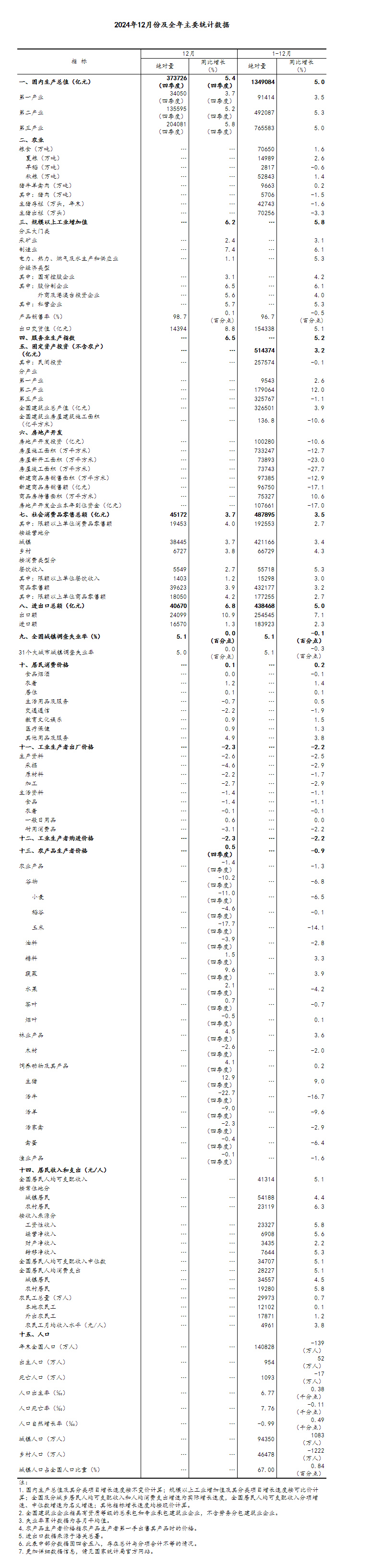 (1)国内生产总值及其分类项目增长速度按不变价计算,规模以上工业增加值及其分类项目增长速度按可比价计算,均为实际增长速度;其他指标除特殊说明外,按现价计算,为名义增长速度。