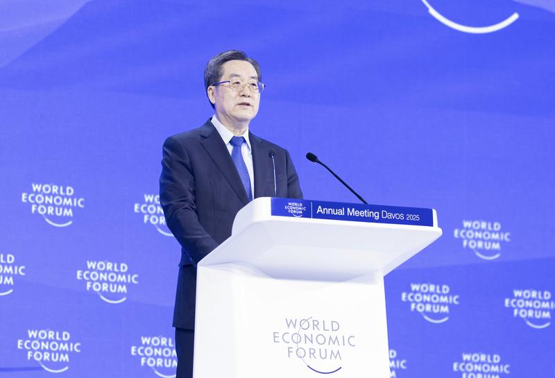 1月21日,中共中央政治局常委、国务院副总理丁薛祥在达沃斯出席世界经济论坛2025年年会,发表题为“坚守多边主义正道 促进开放包容发展”的致辞。新华社记者 黄敬文 摄