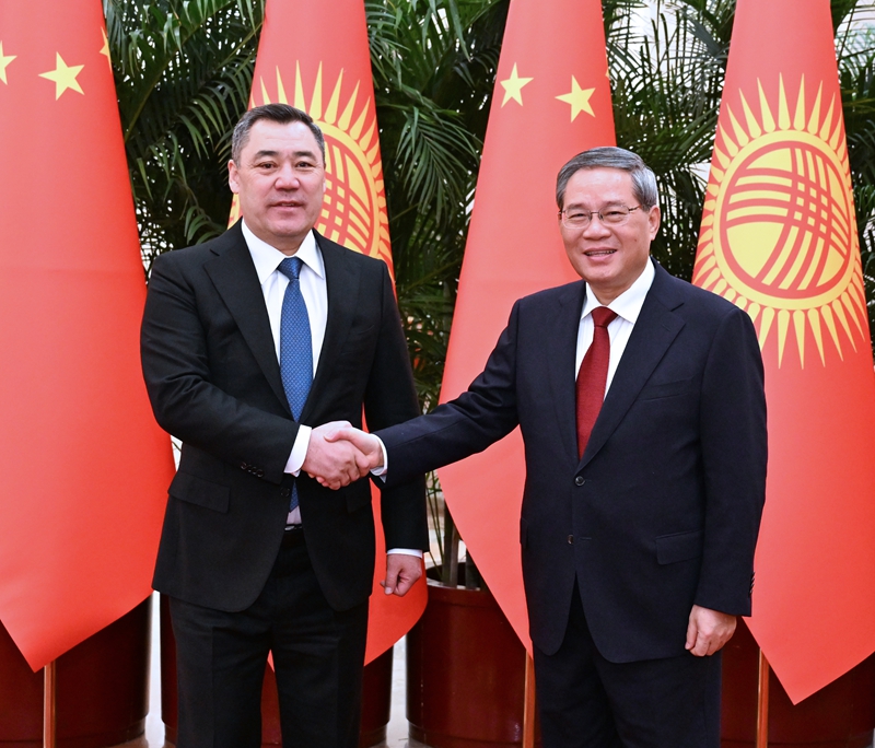 2月5日上午,国务院总理李强在北京人民大会堂会见来华进行国事访问的吉尔吉斯斯坦总统扎帕罗夫。新华社记者 饶爱民 摄