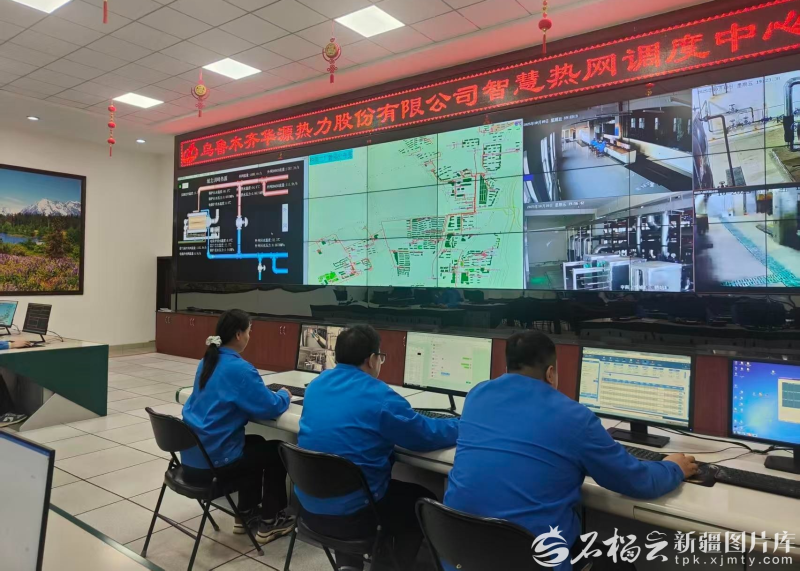 10月10日,乌鲁木齐华源热力股份有限公司工作人员正在智慧热网调度中心对辖区供热情况进行监控。王亚斌 摄